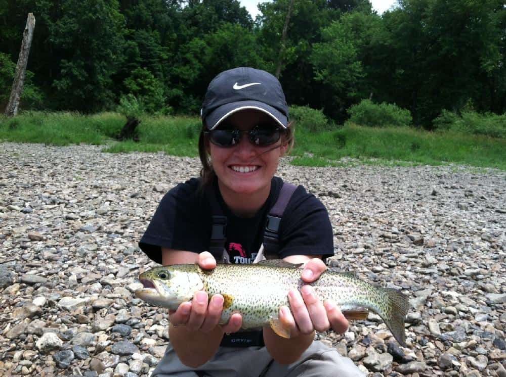 Kevin, from Jefferson City, spent Sunday morning with Jim.  Fairly new fly fisher, so they worked on skills as well as catching fish.  Best patterns were the olive streamer, sizes 14 and 16 ruby midges.  Stan and Dana, also had some fairly new fly fishers from Springfield out.  Bryan is brand new.  He and his brother, David, thought this would be a good way to spent part of the day with their father, Craig, for Father’s Day.  A good time had by all and catching fish on the size 18 ruby as well as the big ruby, and the holographic green crackleback.  Bryan also has a fish swimming around with a peach egg in his mouth.
