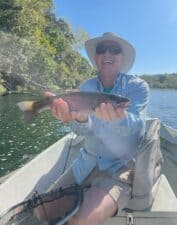 New fly fishers Ray and Jodi spent Tuesday morning on the river with Carolyn. We started out learning the basic casts, roll and pick up and lay down. Both picked up pretty quickly and so it was learn time to learn how to present! Started out with a Ruby 2 midge and Ray hooked the first fish.