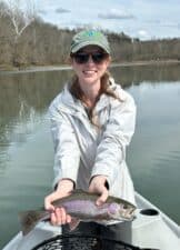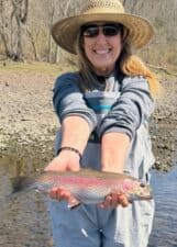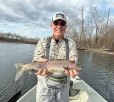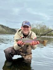 Great, fun trip for Carolyn with Dean from Kansas. They fished Tuesday and Wednesday. Dean has been fishing with us for several years and had his best day yesterday. Beautiful weather both days. Tuesday was definitely a bit warmer, but both days were sunny warm enough! Tuesday was a full run as they started and ran more water then they posted. Fish were spotty. You would catch 3-4 fish in an area then nothing, so you kept on moving. Yesterday, since they turned the water off as opposed to the posting of running water all day, it was find an area with some movement. And, the fish were holding in places so you would fish through those areas and return and fish them some more. Lots of fish both days but especially yesterday!