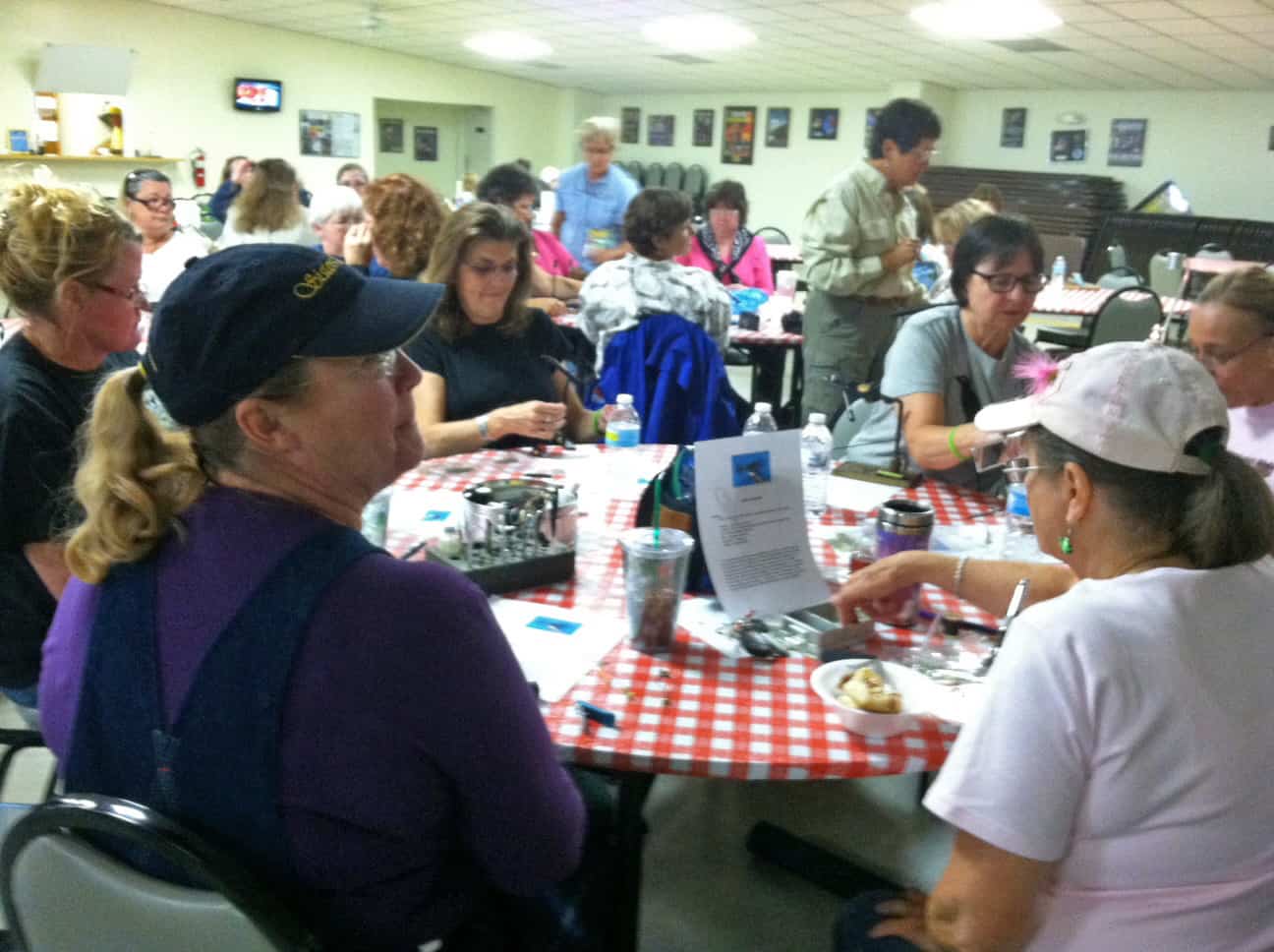 Also on Friday, Gina, Carolyn and another Carolyn from Arkansas, conducted a fly tying clinic for 23 members of Sisters on the Fly.  They were all camping at the KOA Camp Ground just north of us on 165 highway.   What a neat, fun and crazy bunch of ladies!  Everyone rolled up their sleeves and we had some good looking bugs by the time we finished.  Not a record with the numbers we taught, but a darn good average!   After the clinic, Gina and I drove through the camp ground to look at their campers.  They were all very unique in the way they are decorated.  What fun.