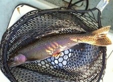 Stan on the water yesterday morning with Pat from California. Running two generators when they put it but it was at the equivalent of not quite a full one generator. They had a good day on the red midge and size 18 ruby midge. Carolyn took herself fishing and had a great day….just getting to fish! Good day on the big ruby with the little ruby dropper, but best fun was on the golden variant sculpin stripping it on the bottom using a 200 gr. 24′ sink tip fly line.