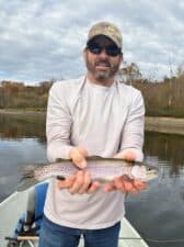 Jim on the water Friday with Walter and his son. Both pretty new to fly fishing so he did some instructional work with them. They caught a few fish on the JQ streamer, ruby and P&P midges.
