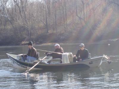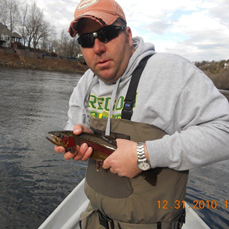 After the rains stopped and we got an all clear from the tornado watch, there were some brave souls wanting to finish up 2010 the best way…on the water. Kristie and Rick from the St. Louis area, spent the rest of the morning and all afternoon with Stan. They had a wonderful day on the red midge with a cerise San Juan worm dropper, and a peach egg pattern. Darrell took Steve and Virgil from Kansas out for the remainer of the fishing day. Steve had fished with Darrell before and decided he wanted to contaminate Virgil. Better yet, this was a Christmas present to the two of them from their wives. Virgil’s first time and he loved it. Their flies were the ruby midge and the red midge.