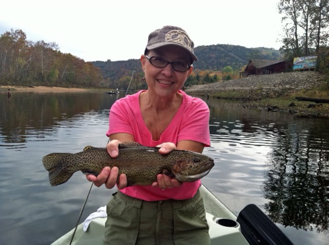 Tuesday it was Joe and his friend, Darrell, from Springfield out for the morning with Stan. This was Darrell’s first time fly fishing and he picked up casting pretty quickly. They did well with the red midge dropped under the big ruby as they had three generators running when they put in. It dropped down to two units, and lots of wind.