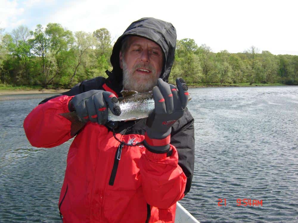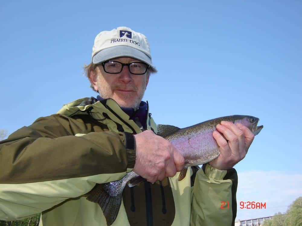 Tuesday was another great day for Bud and his brother, Gary, from Indiana. They spent the day with Stan. Gary is pretty new to the sport, but picked up quickly and both of them really enjoyed stripping the holographic green cracklebacks. Also caught a lot of fish on the primrose & pearl midge. A fast moving storm flared up around 4:00 p.m. We called them from the shop to advise them let them know a storm was coming with possibility of a tornado, so Stan rowed like a mad dog to the takeout and they got out just as the first sprinkles of rain started falling.