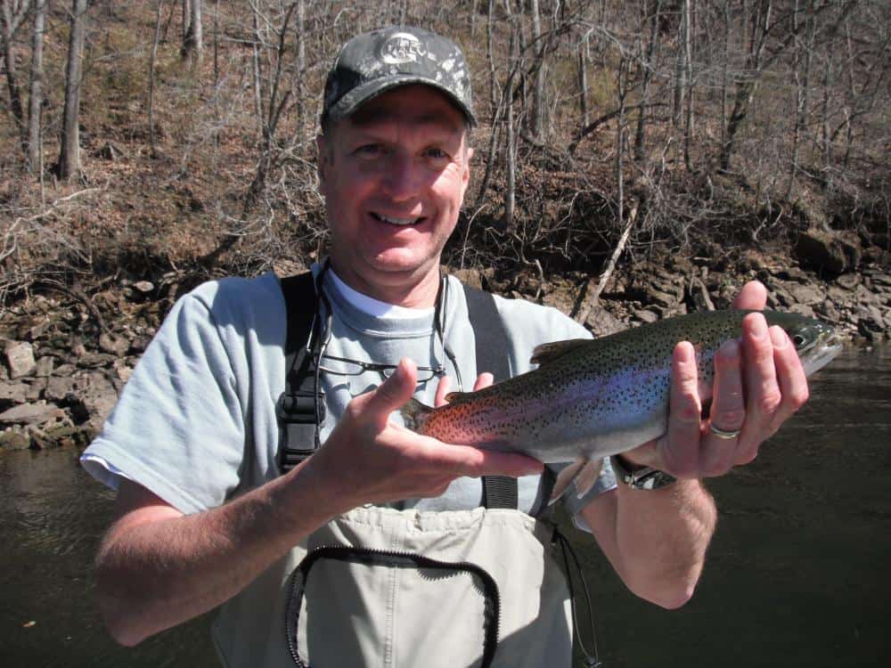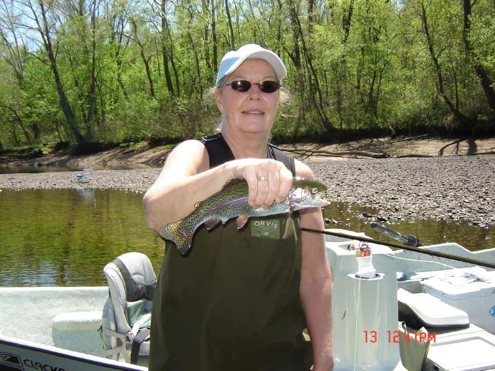 Wednesday was a beautiful day. Clear sky, little wind and mild temperatures. Jay and Leslie, I believe now from the Branson area, and Bob and Kathy, also from the area, decided it was time to learn how to fly fish. So, Carolyn took the ladies, and Jim took the guys. Got some new fly fishers in the area! Leslie and Kathy, after working on their roll cast, pick up and lay down cast, mending and other line management techniques, had a great day on the P&P midge. Still need some practice on keeping the wrist straight on the back cast, but they are definitely coming along well. Jim had the guys, Jay and Bob, after their work session on casting and line management, false casting so they could do some stripping work. They were getting fish on the holographic green crackleback. Fun day!