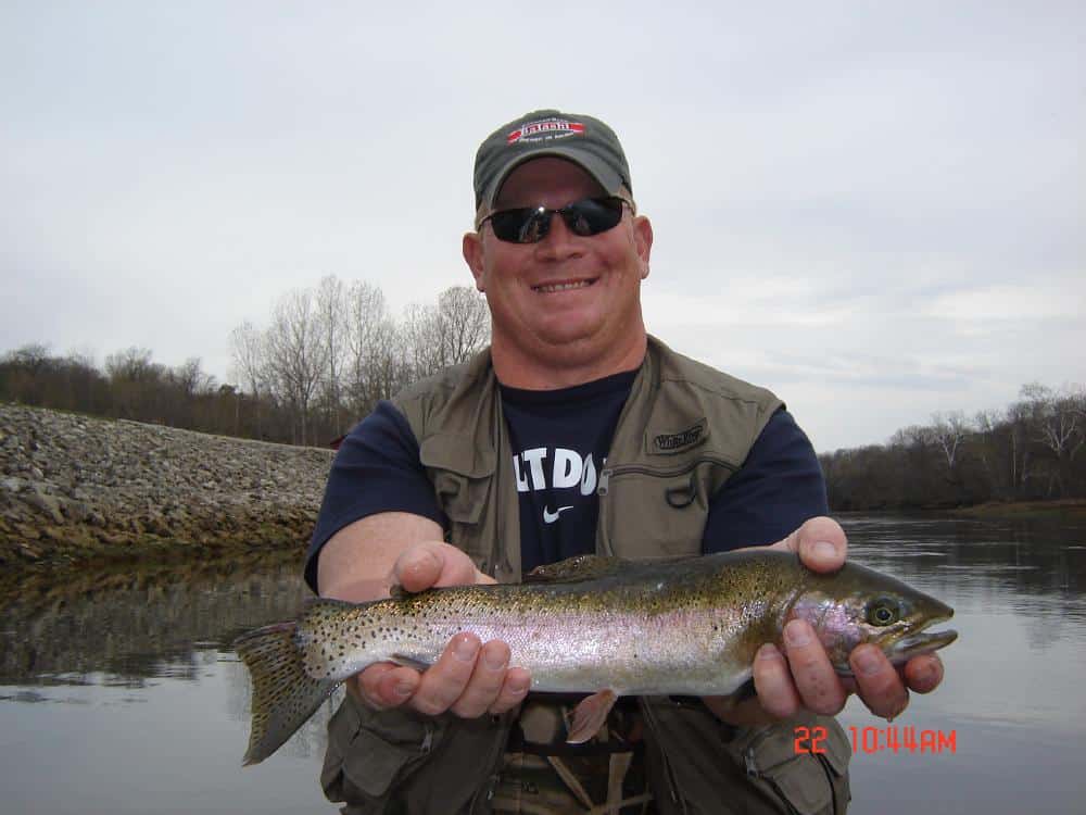 Stan on the water for half a Tuesday with KC and David from West Virginia. First time they fished with us in 2003, KC was trying to get her husband hooked on fly fishing. Good sign, they have been back since and again Tuesday, so I think she has succeeded. The early part of the morning fished pretty slow, but Stan said a light went on at 11:00 a.m. and the fishing took off. Good day on the P&P and rusty midges, and stripping the holographic green crackleback. Ben from Kentucky, was on the river with Jim for a half day outting too. Jim and Ben forked on casting, line work, hook setting and playing the fish. Sore mouthed several fish and brought in several fish on the P&P, blood worm and size 12 olive bugger.