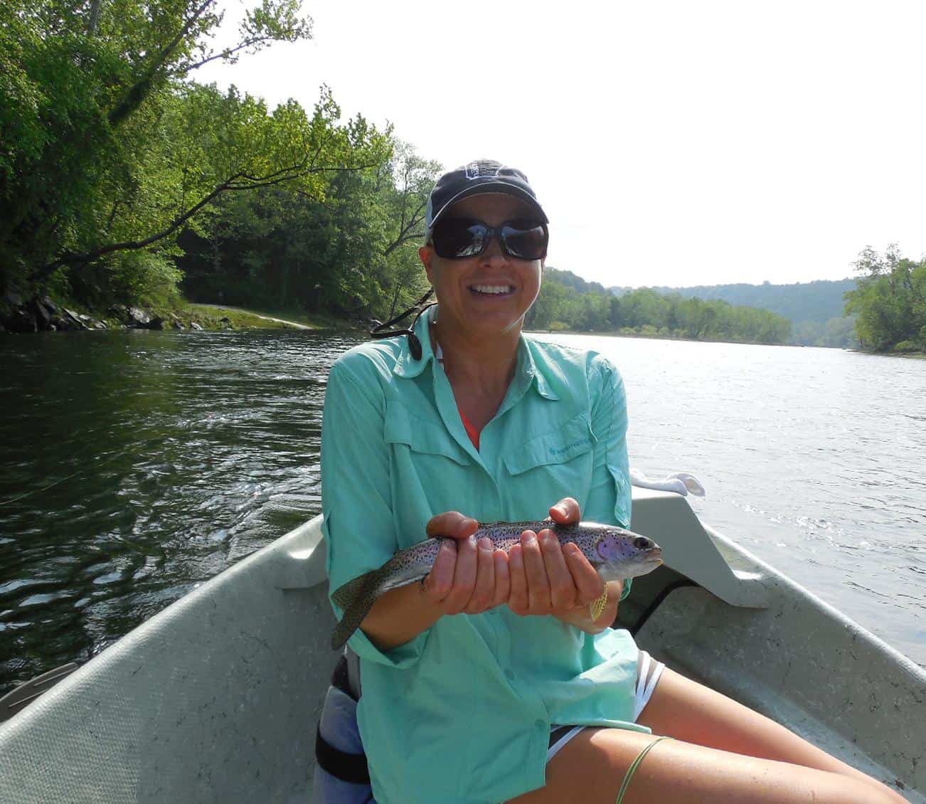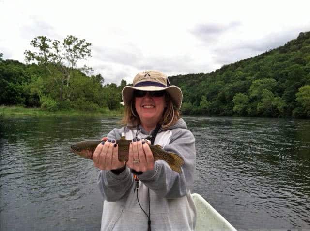 Carolyn had Lee and Meredith from Arkansas. Lee does quite a bit of fly fishing and can throw a line. Meredith it still new and actually boated her first trout on a fly rod Saturday. The morning started out very good. Fish were where they should be and I think we even had a double on on our second drift down the boat ramp bank. However, as Jim found out during the day and we confirmed, it was just not a streamer day, but we had a good day on the big ruby and either a lightening bug or hot hare’s ear nymph dropper. Did catch some early on the copper dun dropper. Several nice fish!