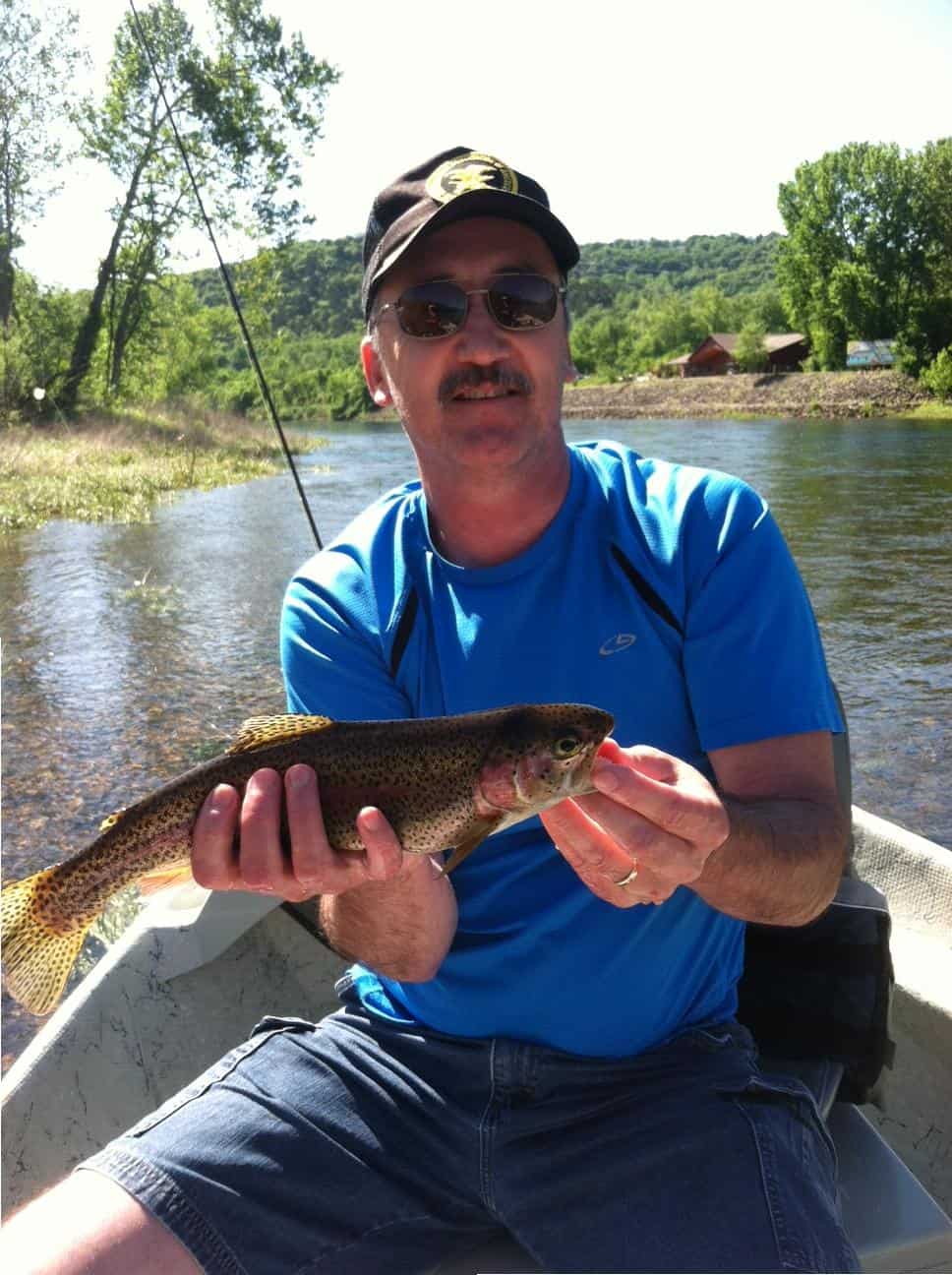 Also out on Tuesday was Stan with a couple guys from Oklahoma, Bob and Dennis. Another guy who had been away from fly fishing for several years, Dennis, had a great time. Both guys did well on the big ruby and the red crackleback. Gary from here in Branson spent a good part of the day on the water with Carolyn. We were scouting around for more places where the fish have moved with this higher water. Great day pulling the CQ streamer and holographic green crackleback. Probably the better sized fish were on the size 16 red d-ribbed midge dropped under the big ruby. Life is good!