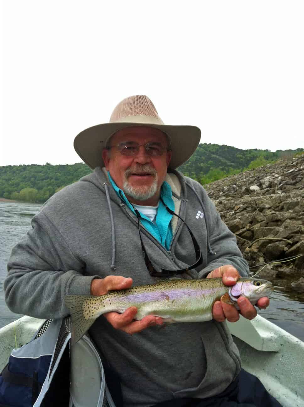 Saturday we had four boats on the water. Jim had a friend from Michigan, Chuck, out most of the day. They had a good day on the black zebra below the ruby midge. He tried pulling streamers that way (Jim’s favorite way to fish), but it just was not a streamer day. Stan had a half day on the water with Bob and and Matt,from Florida. The did well on the big ruby (yep, water was running) and either a black zebra dropper or the primrose & pearl midge. Darrell’s fairly new fly fishers, Morgan and Taylor, were from Springfield, MO. Once they got the hang of it, it was good on the big ruby and black zebra dropper.