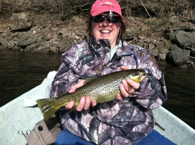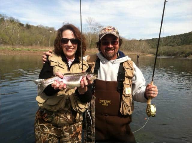 Steve and Diana, from Montana spent half a day on the water with Stan Tuesday. Steve said Taneycomo, especially with the generation, reminded him of the Missouri a little. This was Darlene’s first time fly fishing. Nothing like jumping in feet first into fast fishing conditions! Good day on the big ruby and CQ streamer. Carolyn also had a new fly fisher, Monte. His son-in-law, Keith has been trying to get him to try fly fishing. What an introduction! However, once Monte got the hang of a hook set, he hooked several fish. He