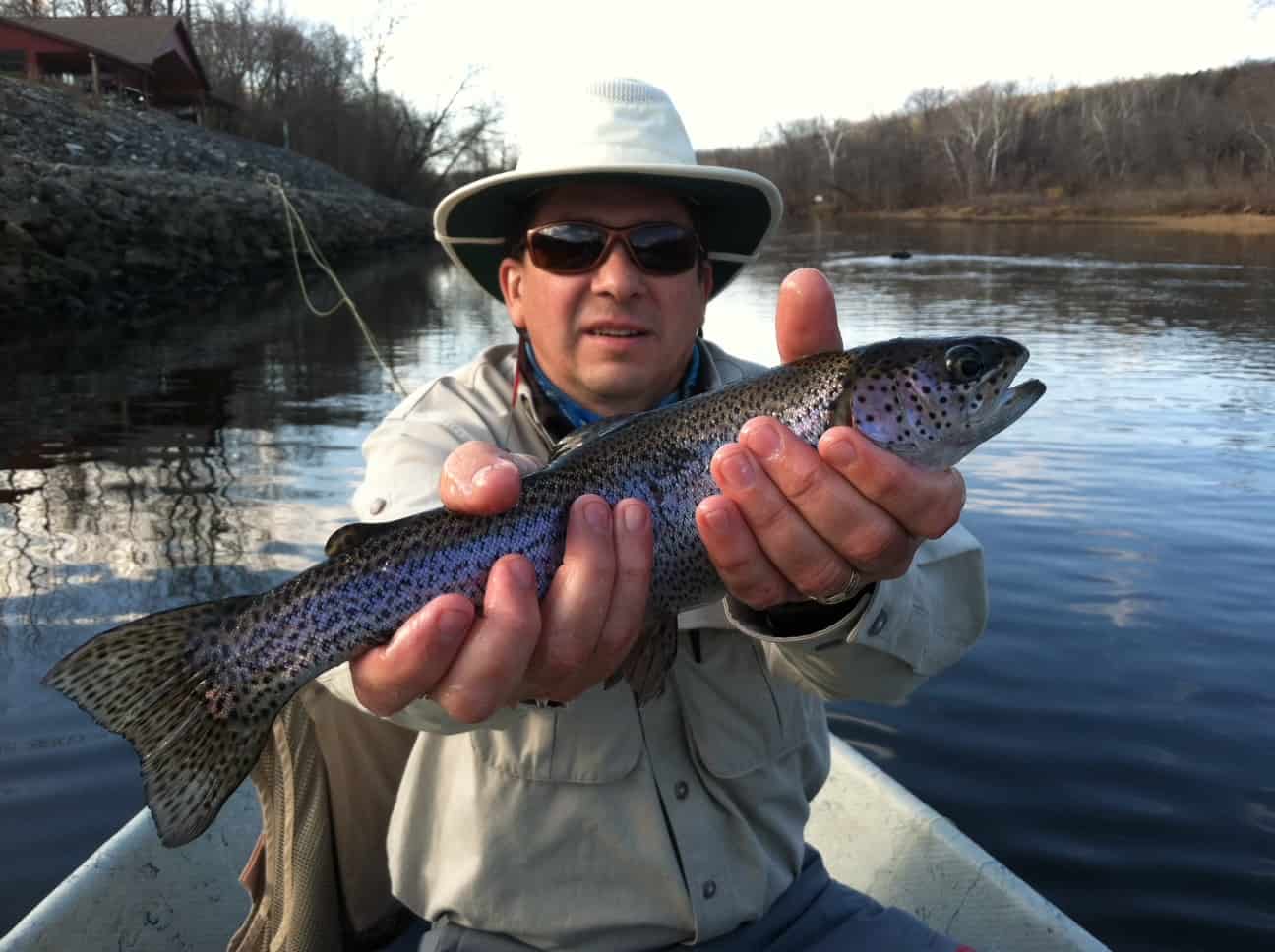 Stan on the water Tuesday afternoon (think the high was 32 degrees!) with two fly fishers from Texas, Dean and his son Todd. Fished and caught on the copper dun midge steadily all afternoon. We’ll see what they catch on today as they are going out again this afternoon.