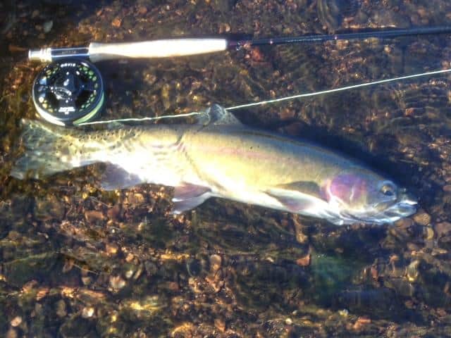Talked Have been talking to several brave souls who have been fishing the past few days and they are seeing quite a few nice rainbows. Think the McCloud strain is showing up in our rainbows right now and they are in or going into their spawn as several of the males caught have been “milking”. The rainbows they are catching are nice, 19-20 inches, and beautifully colored. Heard of two or three fishers who have hooked some even larger. Bundle up and get out there. It might be worth it. Red seems to be the magic color right now, red midges and red soft hackles. One fisher did do well the other day stripping the CQ streamer. Stan had a trip today, but they mutually agreed that it would be nicer tomorrow afternoon and Thursday afternoon! Good move!
