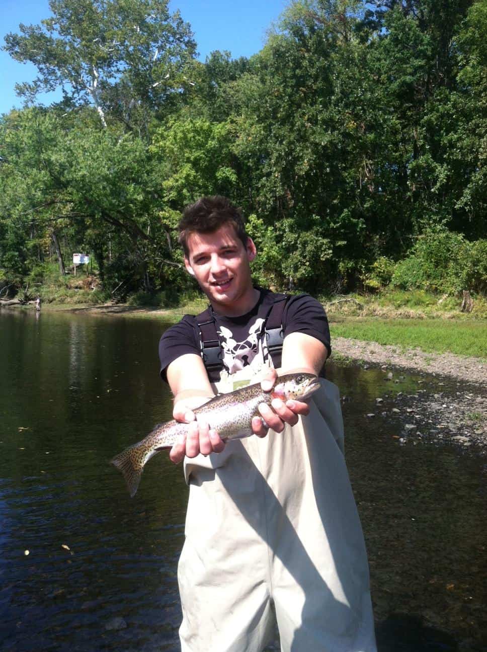 Tuesday it was Joe and his friend, Darrell, from Springfield out for the morning with Stan. This was Darrell’s first time fly fishing and he picked up casting pretty quickly. They did well with the red midge dropped under the big ruby as they had three generators running when they put in. It dropped down to two units, and lots of wind.