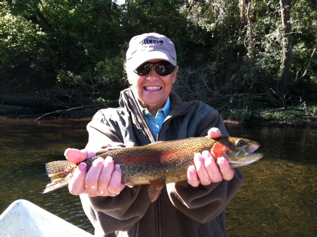 Doug and his wife, Pam from Kansas spent a late morning start half day on the water with Carolyn. Pam now has the nickname of “trout magnet”. She had a very good day on a P&P dropped from an egg pattern. Doug was just going to go along for the ride and watch Pam. That didn’t last long. Before we knew it, Doug had a P&P dropper from his red midge. Several nice 15-16 inch rainbows for for Pam. Fun day on the water, despite the WIND@!
