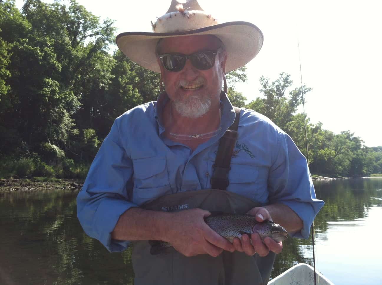 Stan on the water last Thursday (Boy! am I behind?) with Adam from Blue Eye, and his father Eric. Adam had his first experience fly fishing with Stan a couple months ago and decided his father had to give it a try. They had a good day on the big ruby, the size 16 red midge and the size 18 ruby midge. Water was off at put in but came on at 9:00 a.m. that day and then back off at noon. Jim had Brandon and his friend Eric, from St. Louis out for the morning. They did the red with red midge dropper, the CQ streamer and a bug eye bugger.