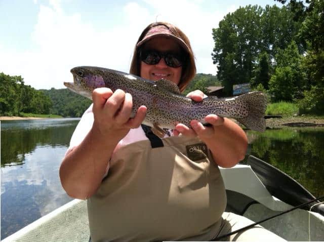 Jason, she loves it! Jason and Carol Ann took a 1/2 day float with Carolyn on Tuesday. It was Janson’s hope that she would like fly fishing. Yes! Carol Ann loves it! As with any new skill, we still have some practicing to do, but she is going to be a good fly fisher. They both did well well with the P&P midge as well as stripping the olive streamer. Carol Ann got the largest fish of the day, a 17 inch rainbow. Stay with it Carol Ann!