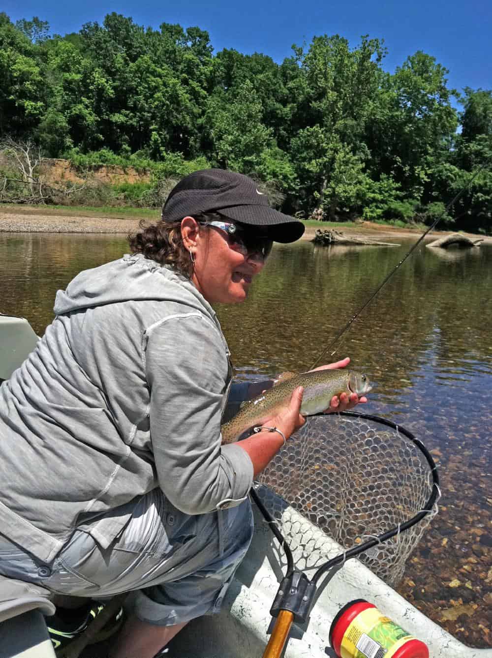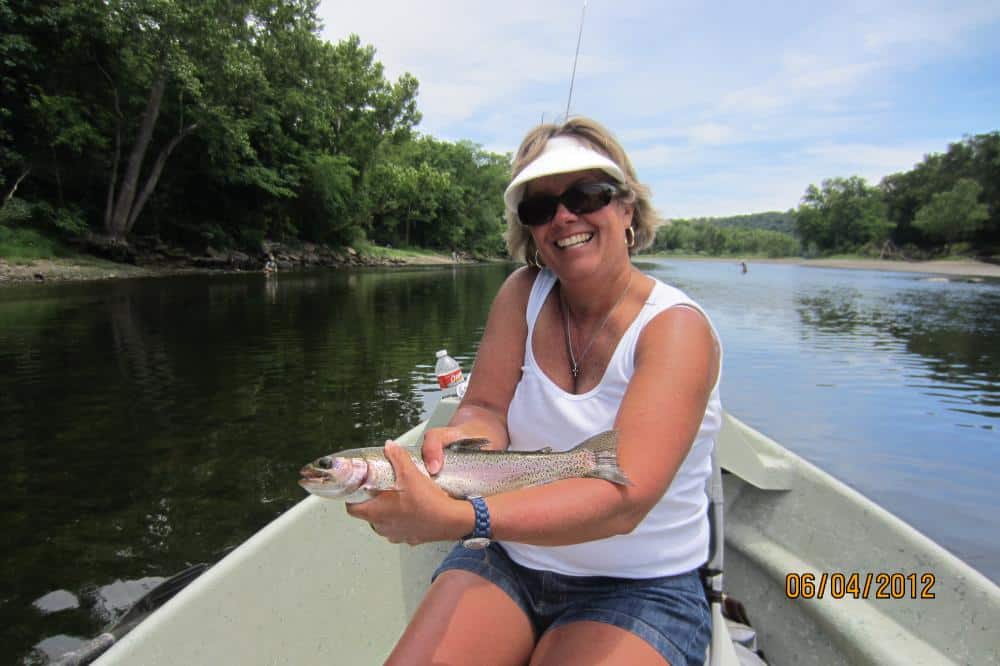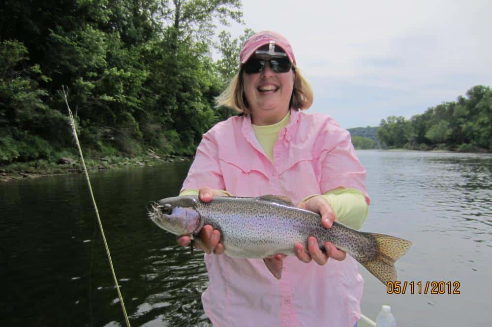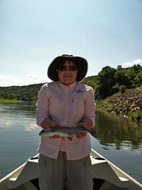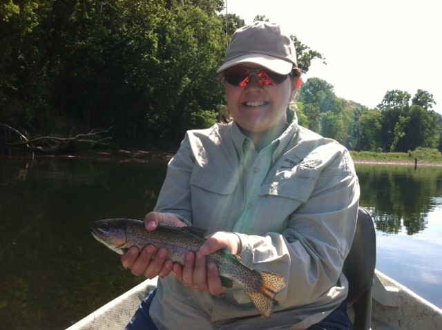 Carolyn took Laura, from Oklahoma, out for a half day instructional trip. Her husband, Scott, came along for the ride as they were running water. We definitely improved on the casting. She hooked several on the big ruby midge, but her best pattern and technique of the day was stripping the holographic green crackleback. Good day for her on this pattern.
