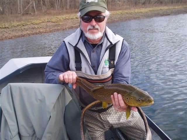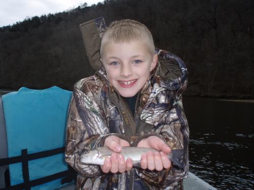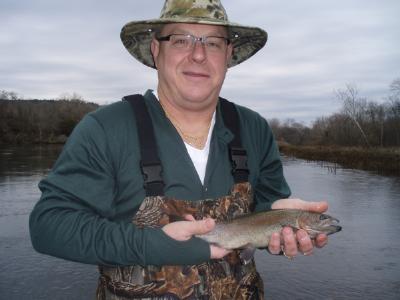 Friday, Stan had Frank, from St. Louis, out for half a day. They spent the whole trip pulling and catching on the holographic green crackleback with and without a sinking leader. Lots of fish taking this. They tried a few other streamer patterns, but this is what they wanted. Mike, from Oklahoma, but also has a place here in Branson, spent half a day on the water with Carolyn. They too found that the holographic green crackleback was the fly of choice….lots of fish to the boat. This was definitely a picture perfect day. Very good fishing and before the trip was over, Mike had taken his heavy jacket off and was fishing in his short sleeve shirt!