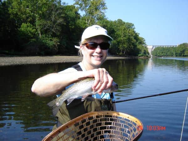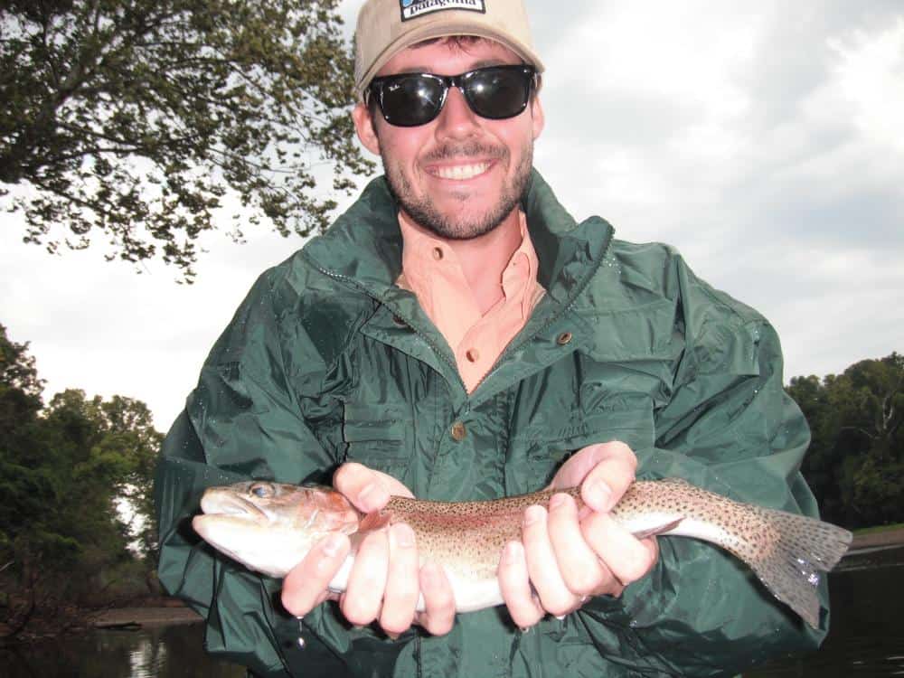 Sunday, Dave and his son Jefferson, from Oklahoma, spend the morning learning how to fly fish with Jim. Their best pattern was the varigated gold sculpin pulled very slowly. They also caught a few on the blood worm. Meanwhile, Stan had Trahy and his wife Beth, from Kansas out for half a day. They had a pretty good morning on the rusty midge, and, when the water came on, the red San Juan worm.